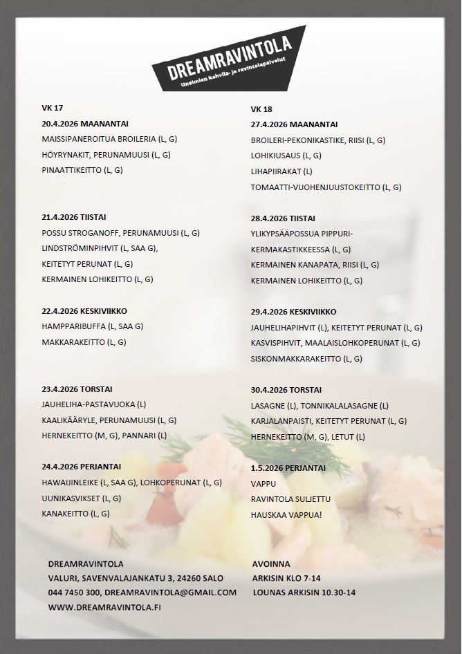 Tulosta ruokalista tästä linkistä!